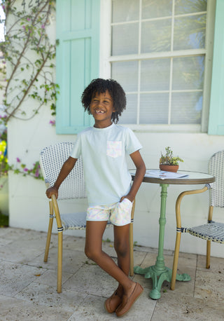 Pima Printed Collared Shirt with Gathered Shorts - Polar Express - FINAL SALE