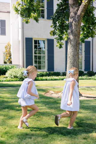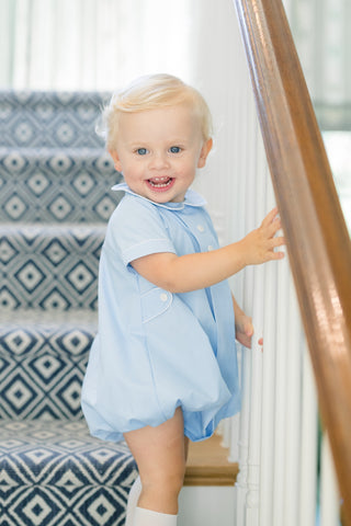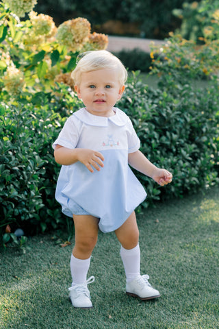 *PRE-ORDER* Girls Pima Knit Ruffle-neck Bubble - Blue Dots