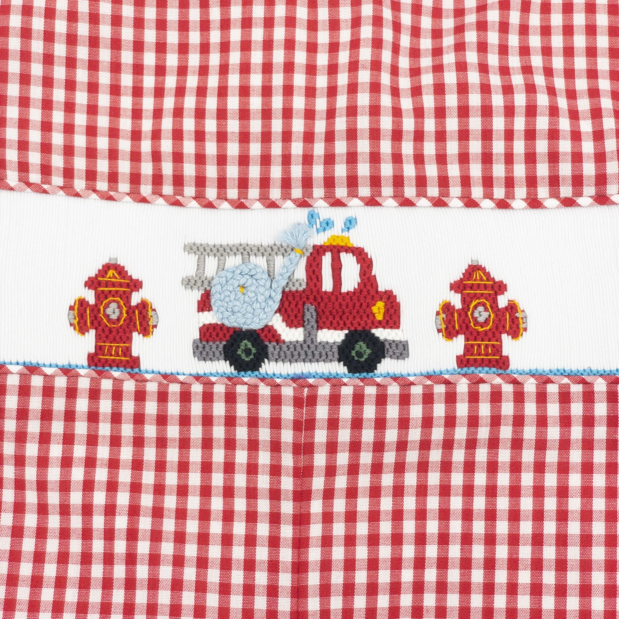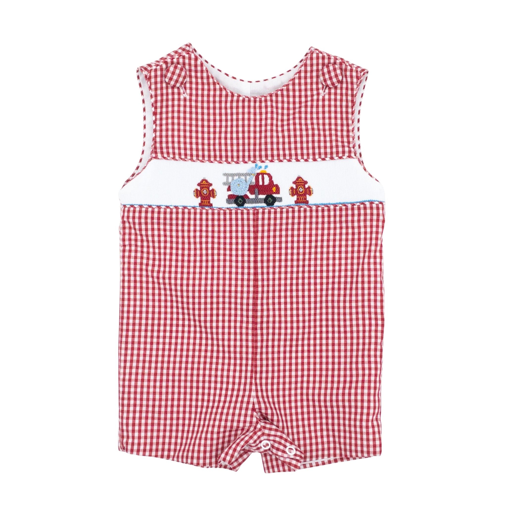 The Ashton Shortall with Hand-smocking features a classic red gingham print paired with fun firetruck hand-smocking details. This shortall is designed for everyday wear, offering comfort and freedom of movement for playful adventures anytime. Its lightweight fabric and practical design make it an easy choice for your little one’s active days!