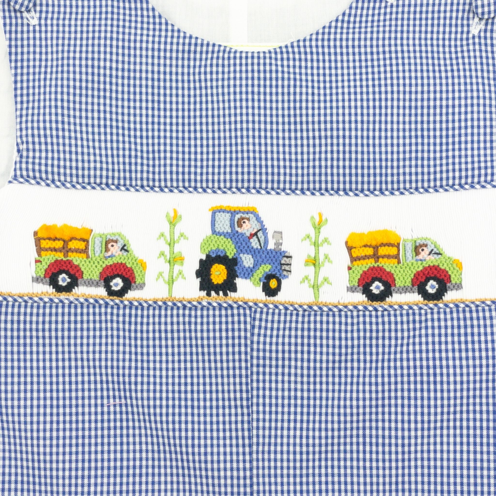 No shortall captures the spirit of fall better than the Ashton Shortall. Featuring intricate harvest-inspired hand-smocking and crafted in classic blue gingham, it combines cozy warmth with timeless style for an unbeatable seasonal favorite!