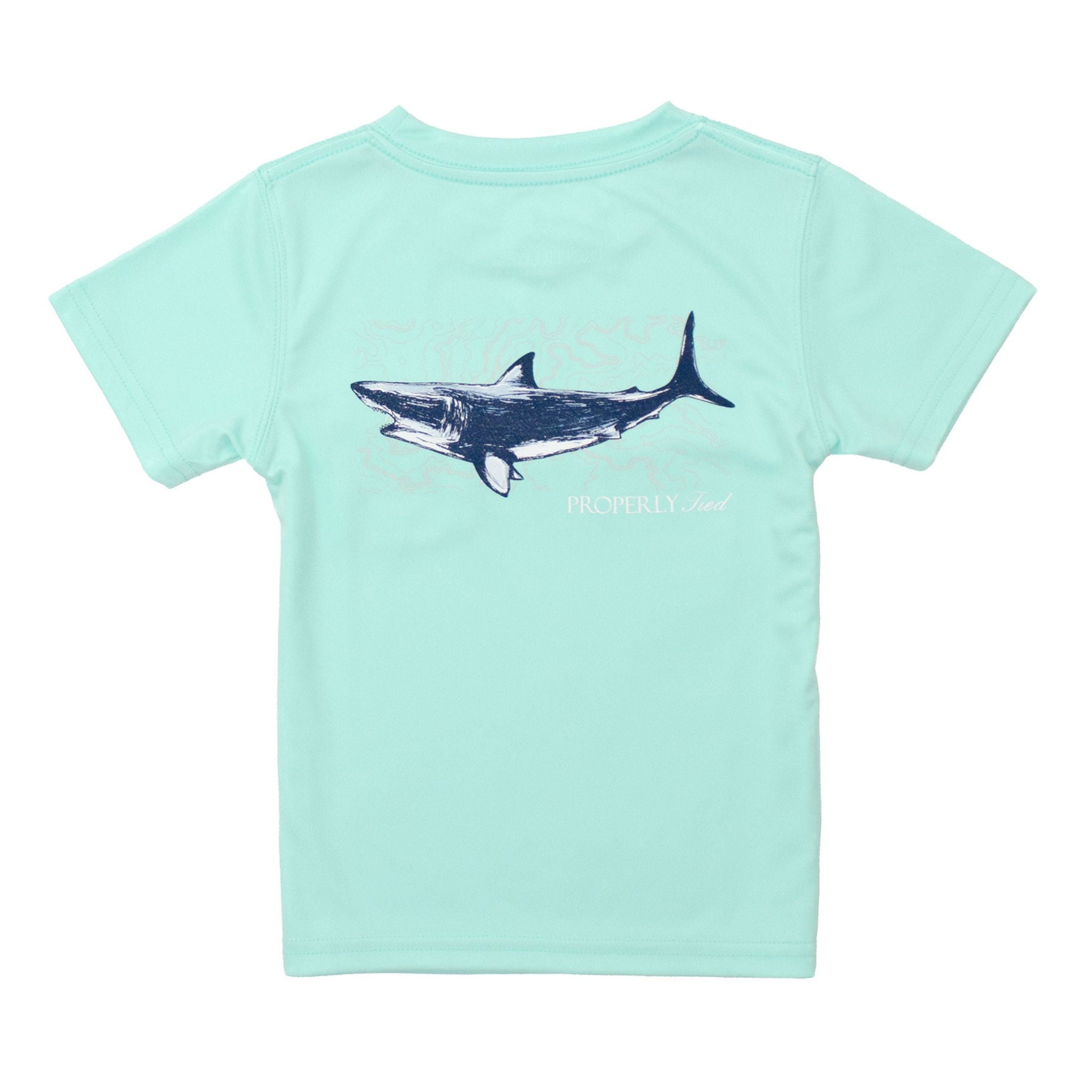The Short Sleeve Performance Tee in Seafoam with Topo Shark graphic combines breathable, moisture-wicking fabric with hand-drawn graphics for a comfortable, performance-ready fit. Made from 100% polyester, this lightweight and soft shirt is designed to keep you cool no matter the activity.