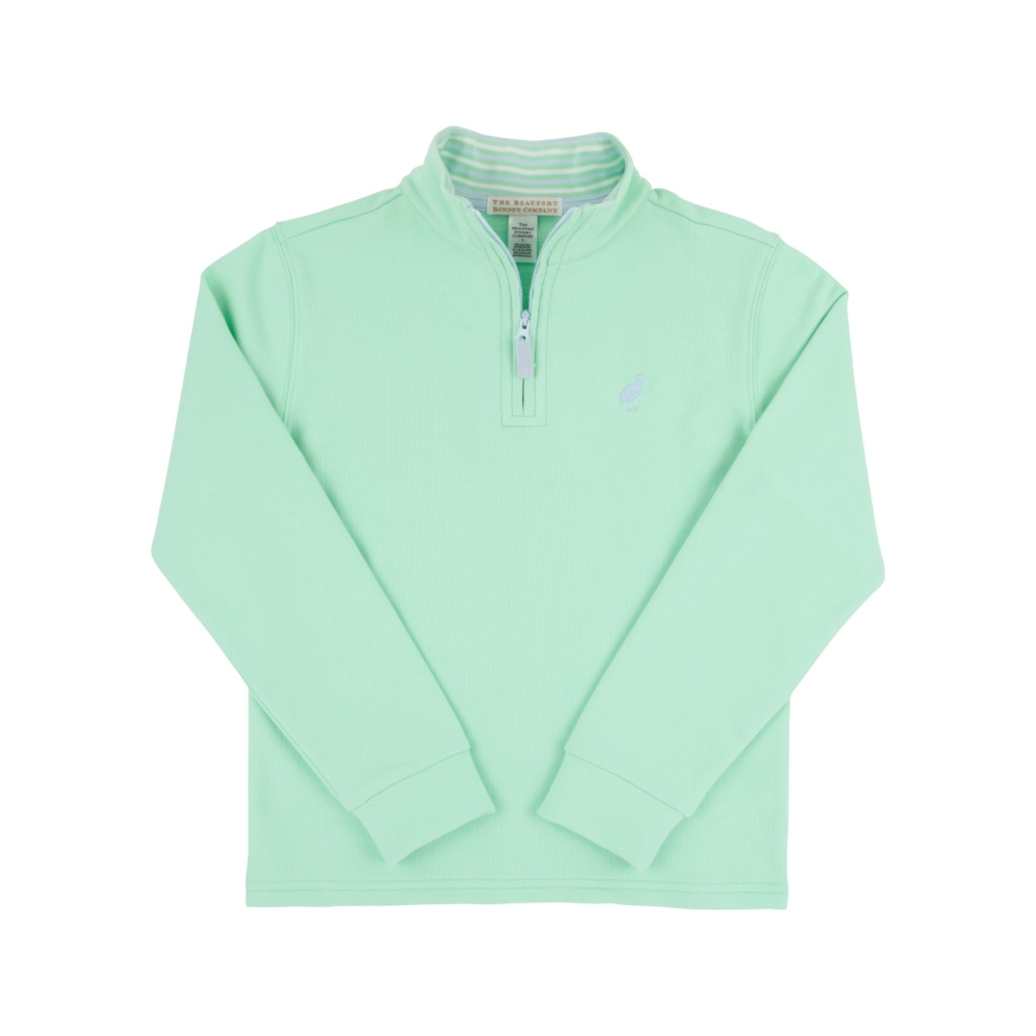Our Hayword Half-Zip in fresh Grace Bay Green with Buckhead Blue Stork brings coastal preppy style to his wardrobe. This versatile boys' pullover features a convenient half-zip design that's perfect for layering and ideal for school days, weekend outings, or any occasion that calls for effortless style. Crafted for lasting comfort and easy movement, it's an everyday essential!