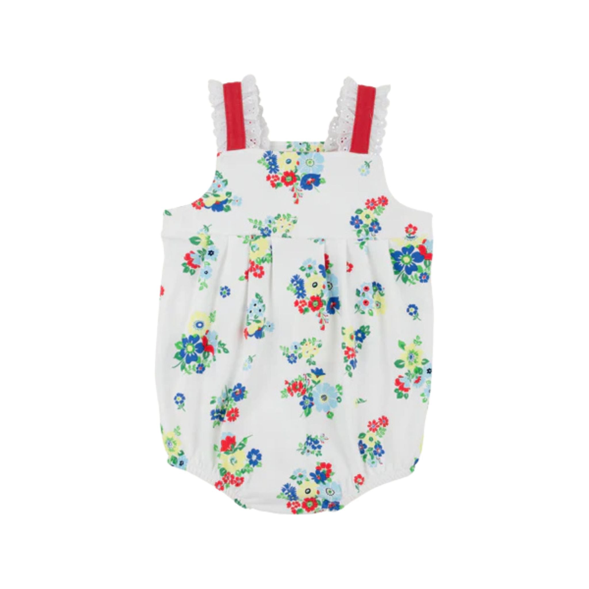 Our Branham Bubble in Biltmore Blooms with Buckhead Blue, Richmond Red, and Worth Avenue White Eyelet is blooming with color and charm and is absolutely perfect for every spring and summer occasion! The stunning Biltmore Blooms print paired with sweet eyelet details makes this bubble ideal for vacations, picnics, play dates, and all of your summer festivities. This bubble is a warm weather wardrobe essential!
