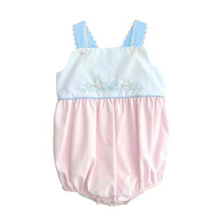 *PRE-ORDER* Girls Pima Knit Ruffle-neck Bubble - Blue Dots