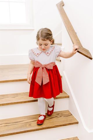 Billie Bishop Dress (Corduroy) with Hand-smocking - Hearts