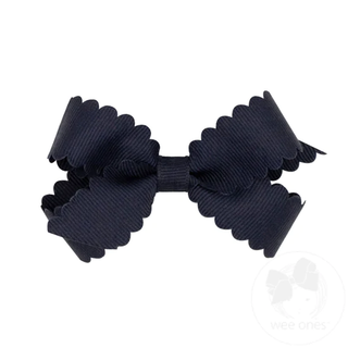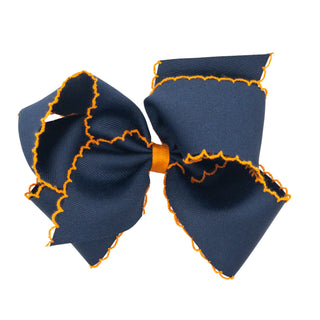 Classic Grosgrain Moonstitch Hair Bow - Navy with Orange