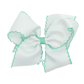 Classic Grosgrain Moonstitch Hair Bow - White with Lucite