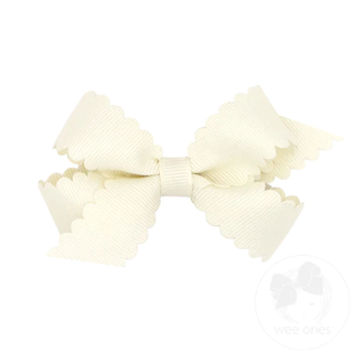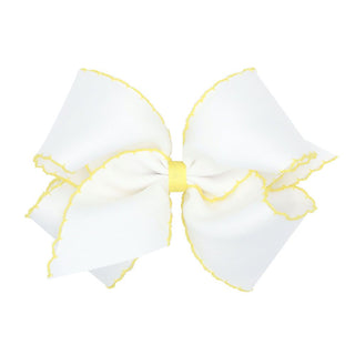 Classic Grosgrain Moonstitch Hair Bow - White with Light Yellow