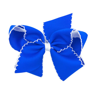 Classic Grosgrain Moonstitch Hair Bow - Electric Blue with White