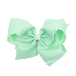 Classic Grosgrain Moonstitch Hair Bow - Pale Green with White