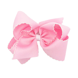 Classic Grosgrain Moonstitch Hair Bow - Pearl Pink with White