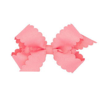 Classic Grosgrain Moonstitch Hair Bow - Hot Pink with White