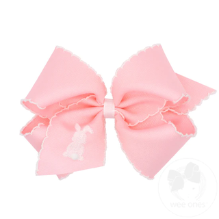 Embroidered Grosgrain Moonstitch Hair Bow - White Easter Bunny