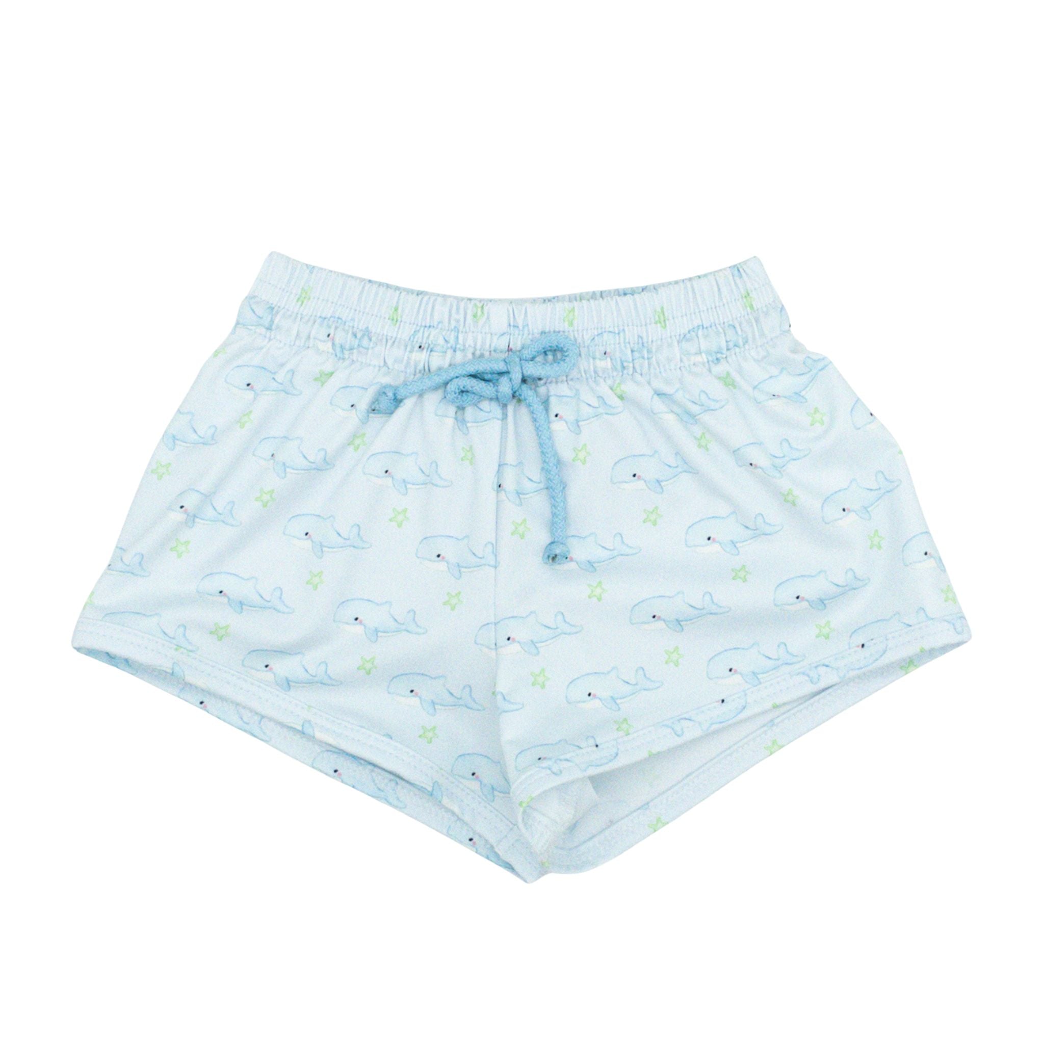 Dive into summer fun with these charming swim shorts featuring a delightful whales and stars print. Perfect for your little boy's water adventures, whether at the beach, pool, or splash pad. The playful design captures imagination while keeping him comfortable during active play. Ideal for warm-weather days and making a splash this season!