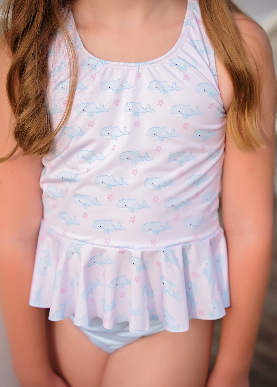 *PRE-ORDER* Collette Peplum Swimsuit - Oh Whale