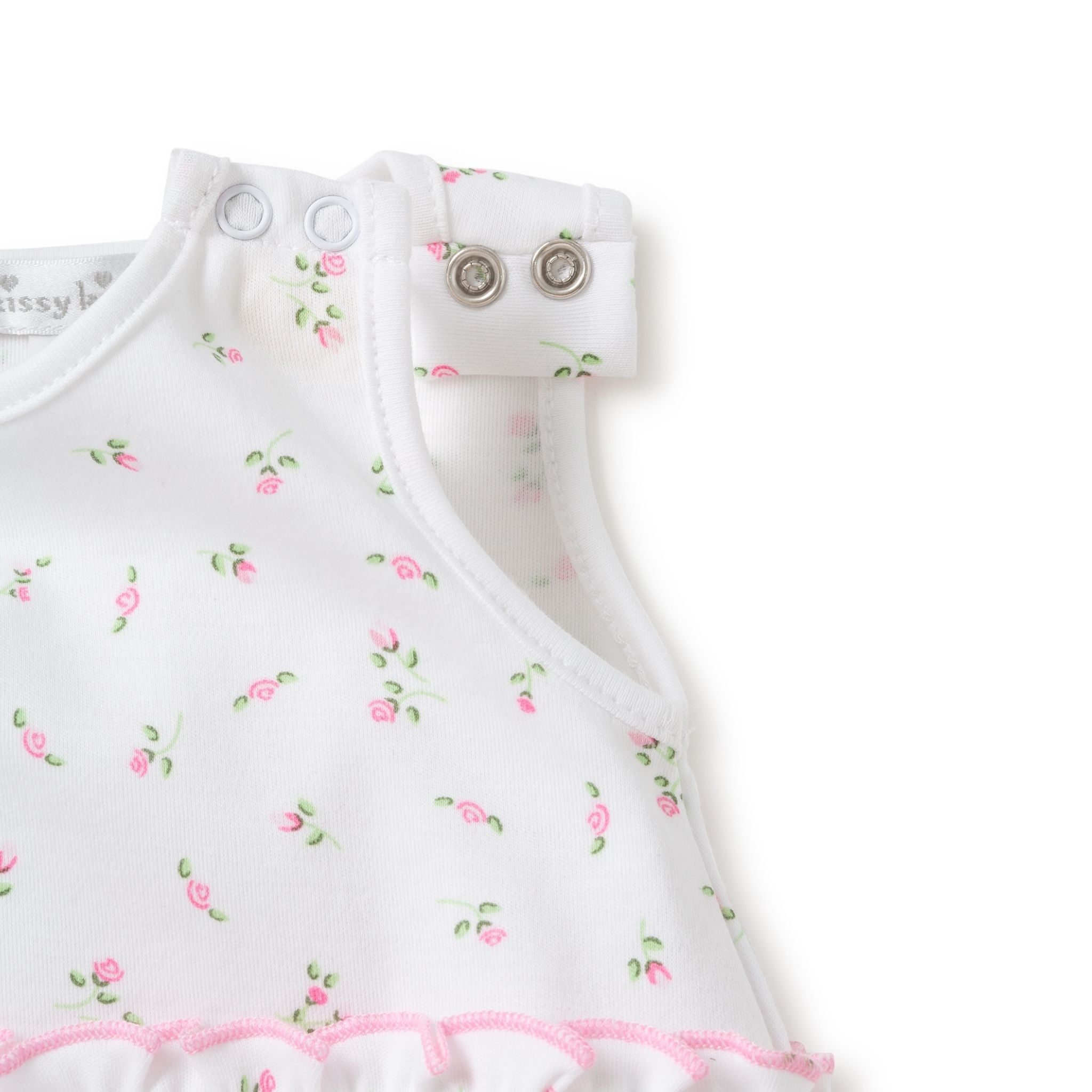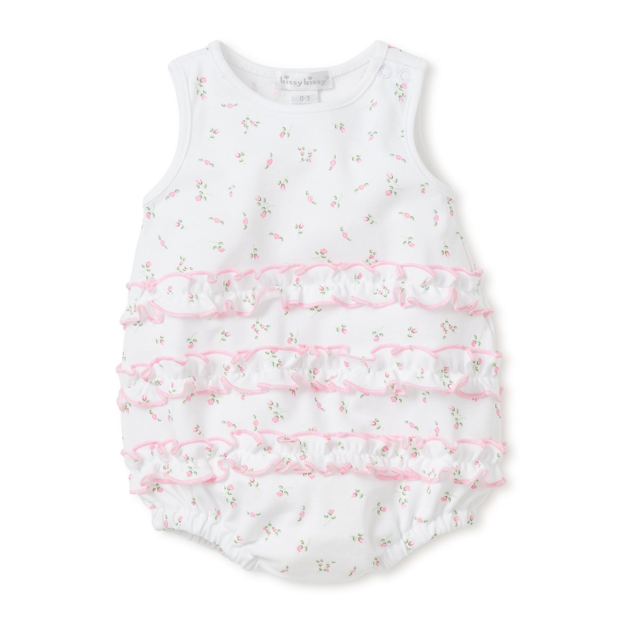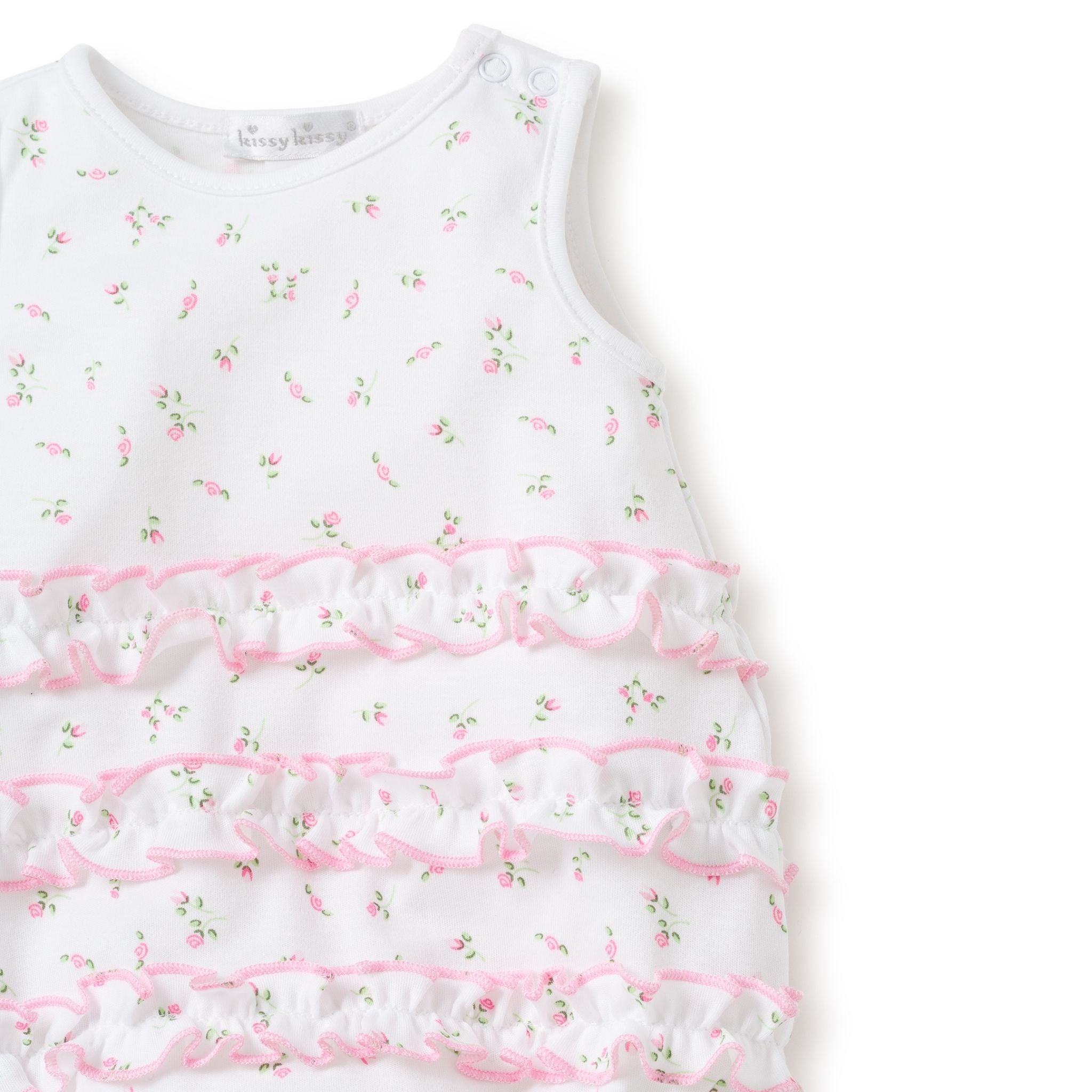 This Printed Ruffle Bubble bursts with personality, featuring an all-over Garden Roses print that's absolutely precious. Playful ruffles frame the design, and the 100% Pima cotton construction ensures her skin stays happy and comfortable throughout the day's adventures!