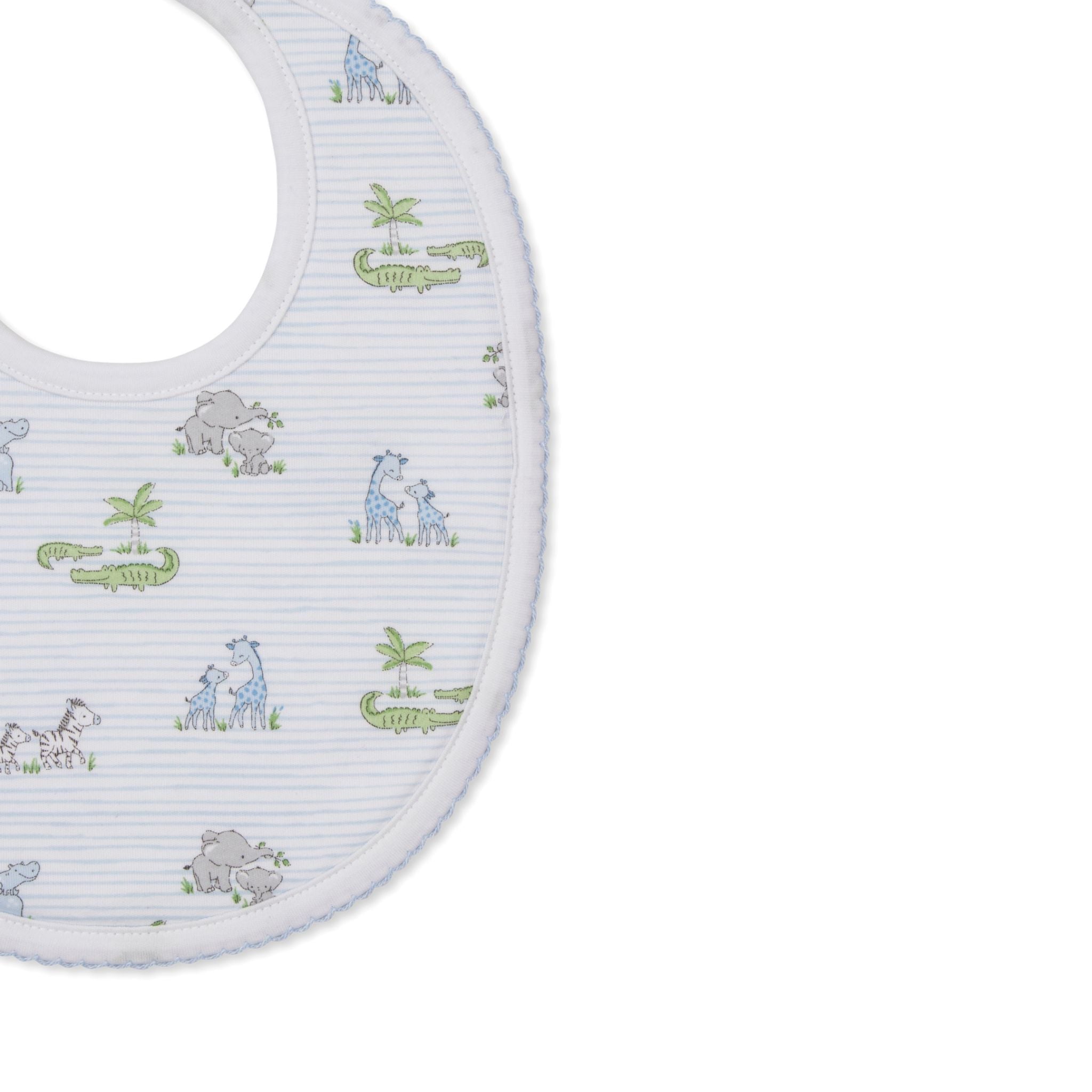 The Kissy Kissy Printed Bib in Safari Party print is perfect for catching your baby's mealtime messes. Made from the softest Pima cotton for ultimate comfort!