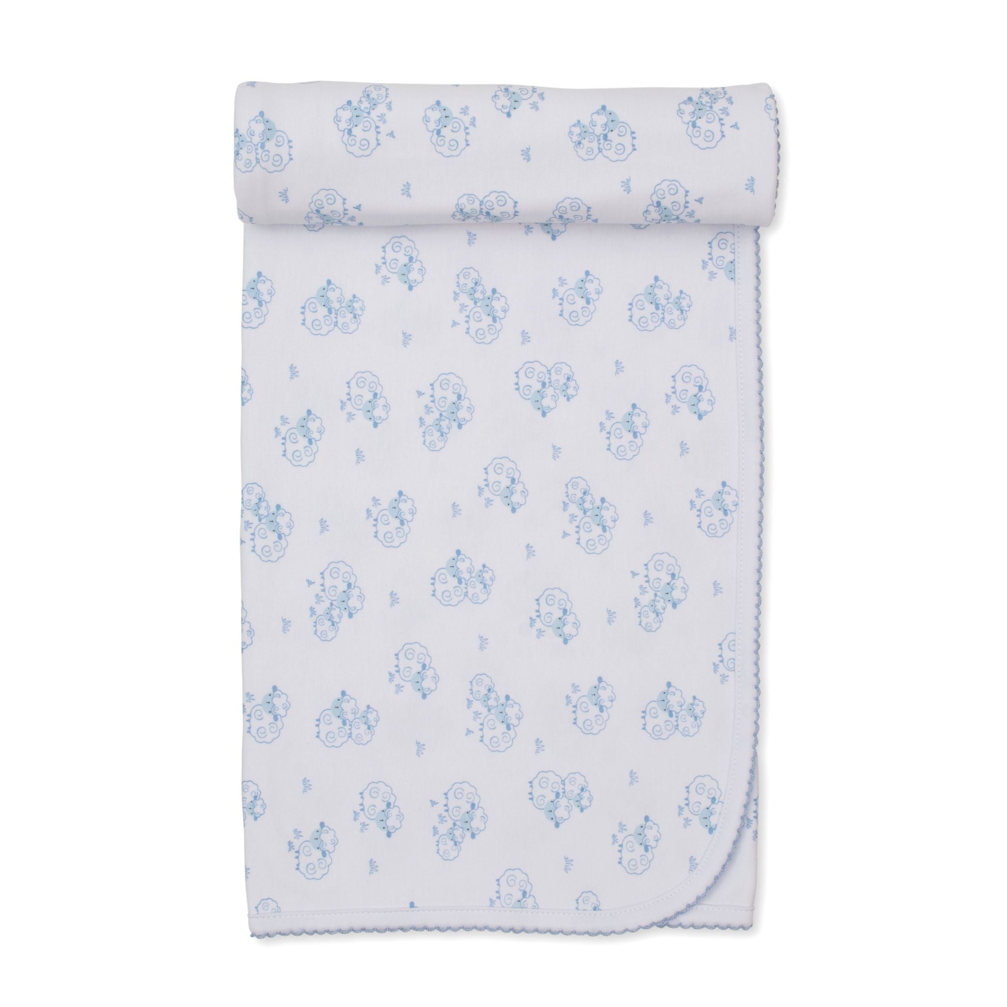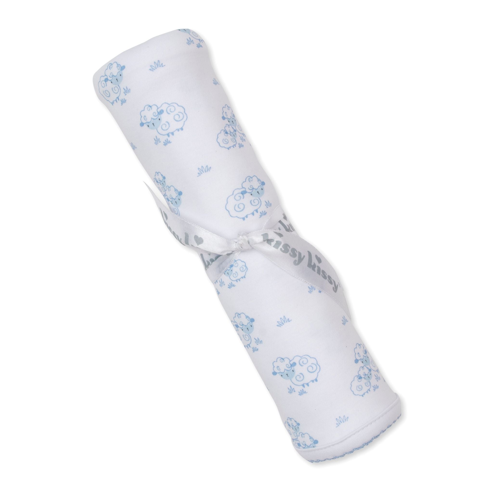 Wrap your baby in the gentle comfort of Kissy Kissy's Printed Blanket featuring the Light Blue Sweet Sheep print. Crafted from the softest Pima cotton, this cozy blanket provides warmth and softness, perfect for delicate skin and soft snuggles!