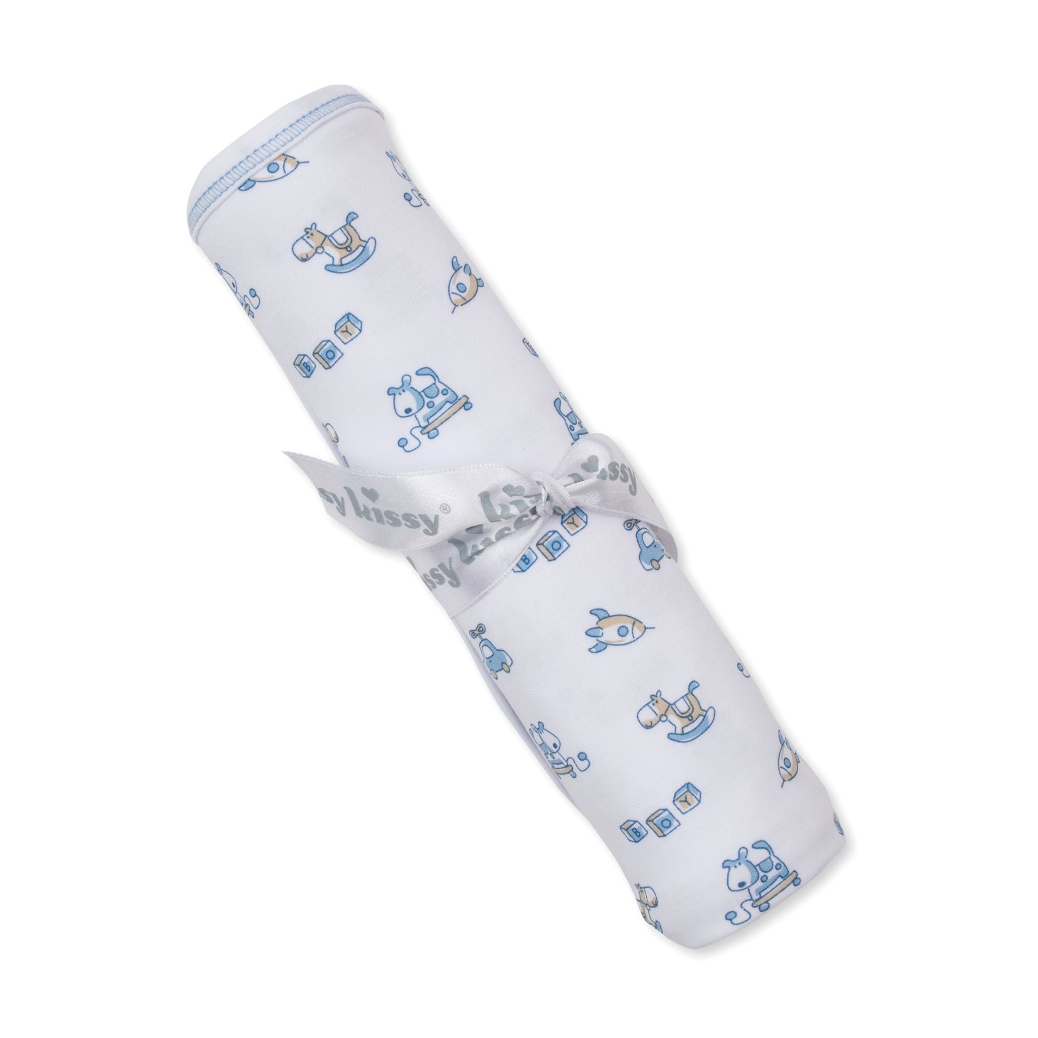 Wrap your baby in the gentle comfort of Kissy Kissy's Printed Blanket featuring the Vintage Toy Fun print. Crafted from the softest Pima cotton, this cozy blanket provides warmth and softness, perfect for delicate skin and soft snuggles!