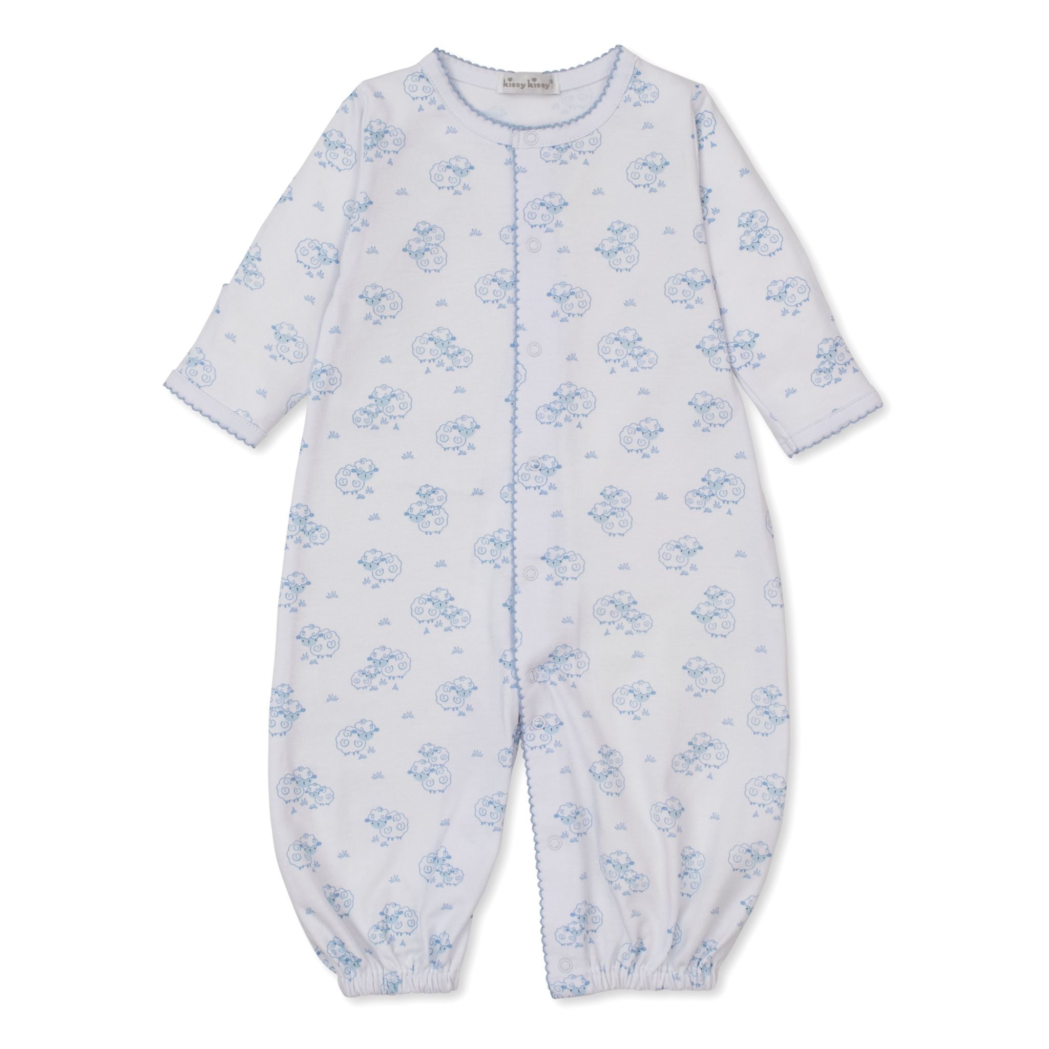 This Printed Converter Gown features a charming Sweet Sheep print in Light Blue and is crafted from ultra-soft Pima cotton to keep your baby comfortable all day. Designed with convenient snaps, it easily transforms from a cozy gown to a playful playsuit, making it perfect for both naptime and active moments. A versatile and gentle choice for your little one’s wardrobe.