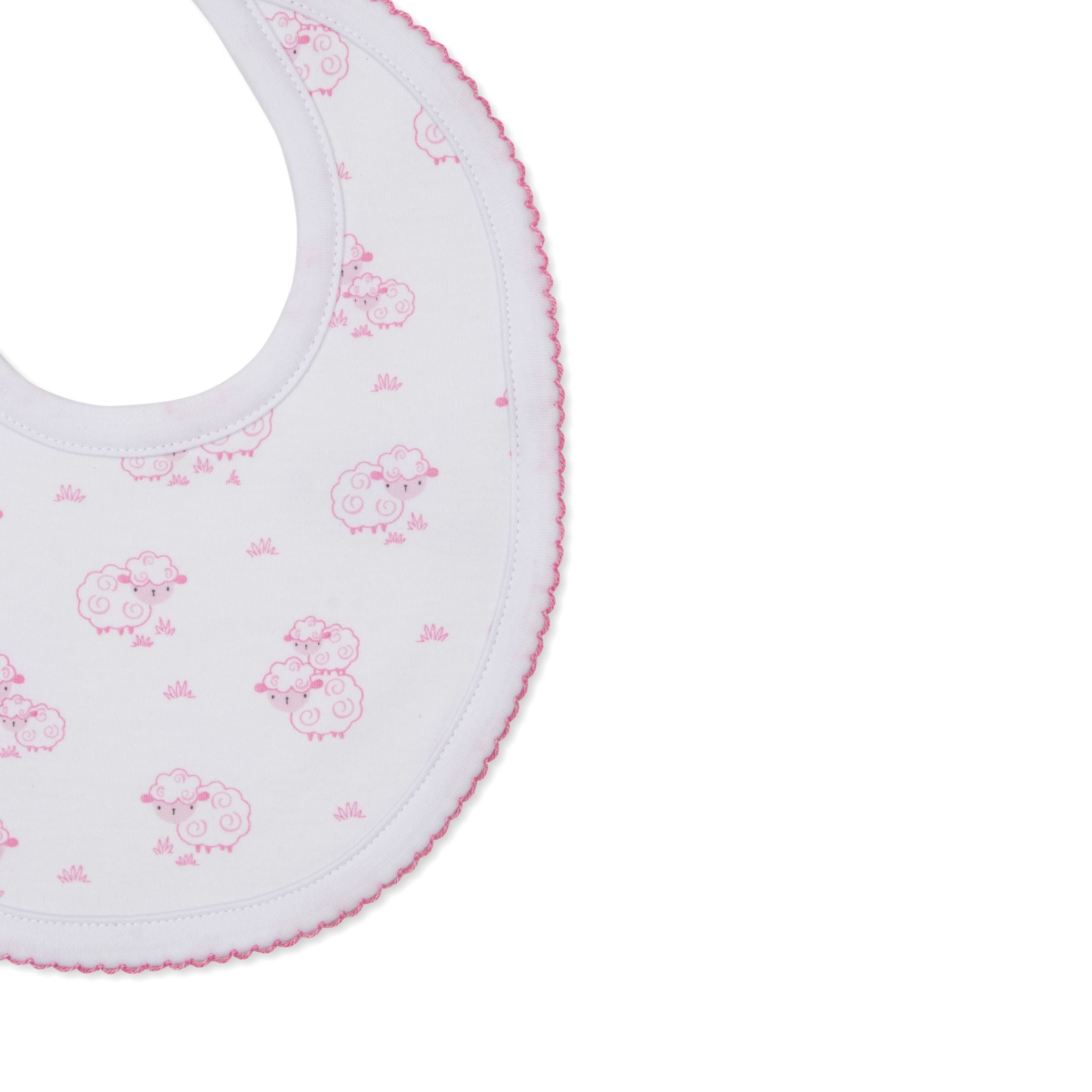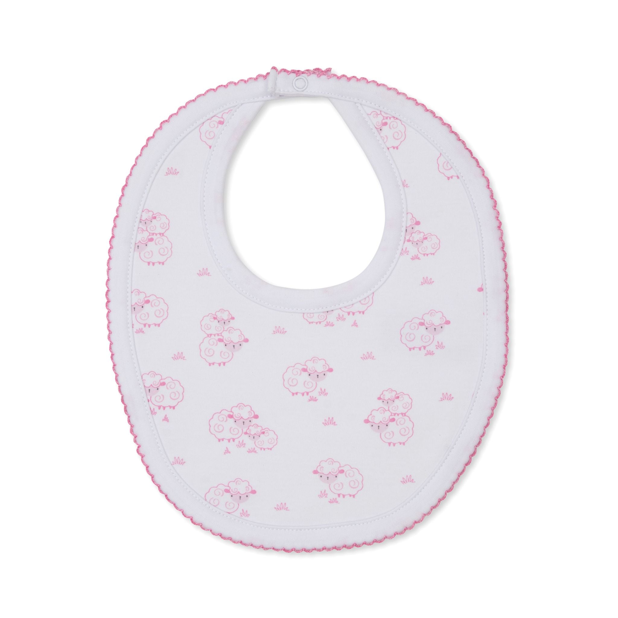 The Kissy Kissy Printed Bib in Light Pink Sweet Sheep print is perfect for catching your baby's mealtime messes. Made from the softest Pima cotton for ultimate comfort!