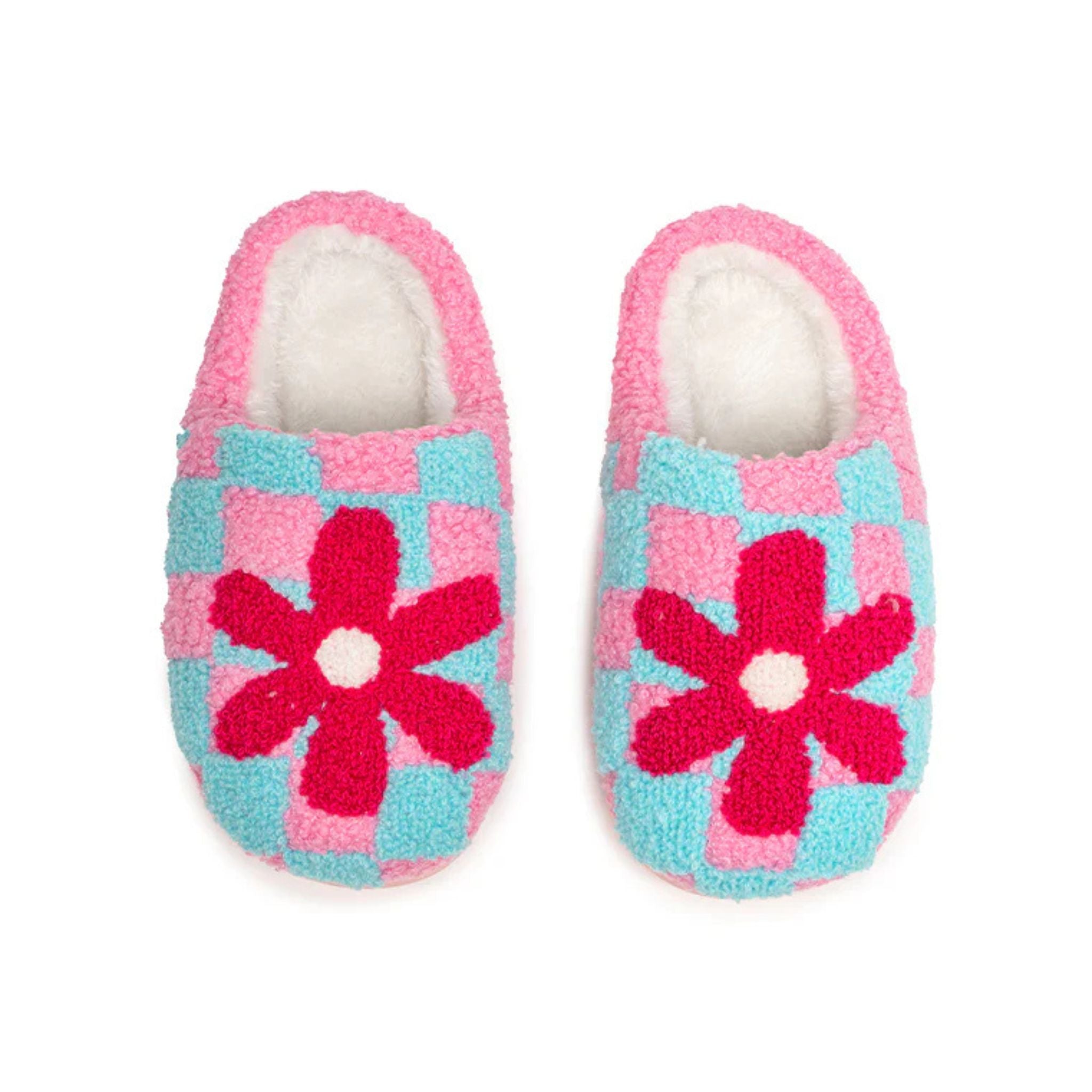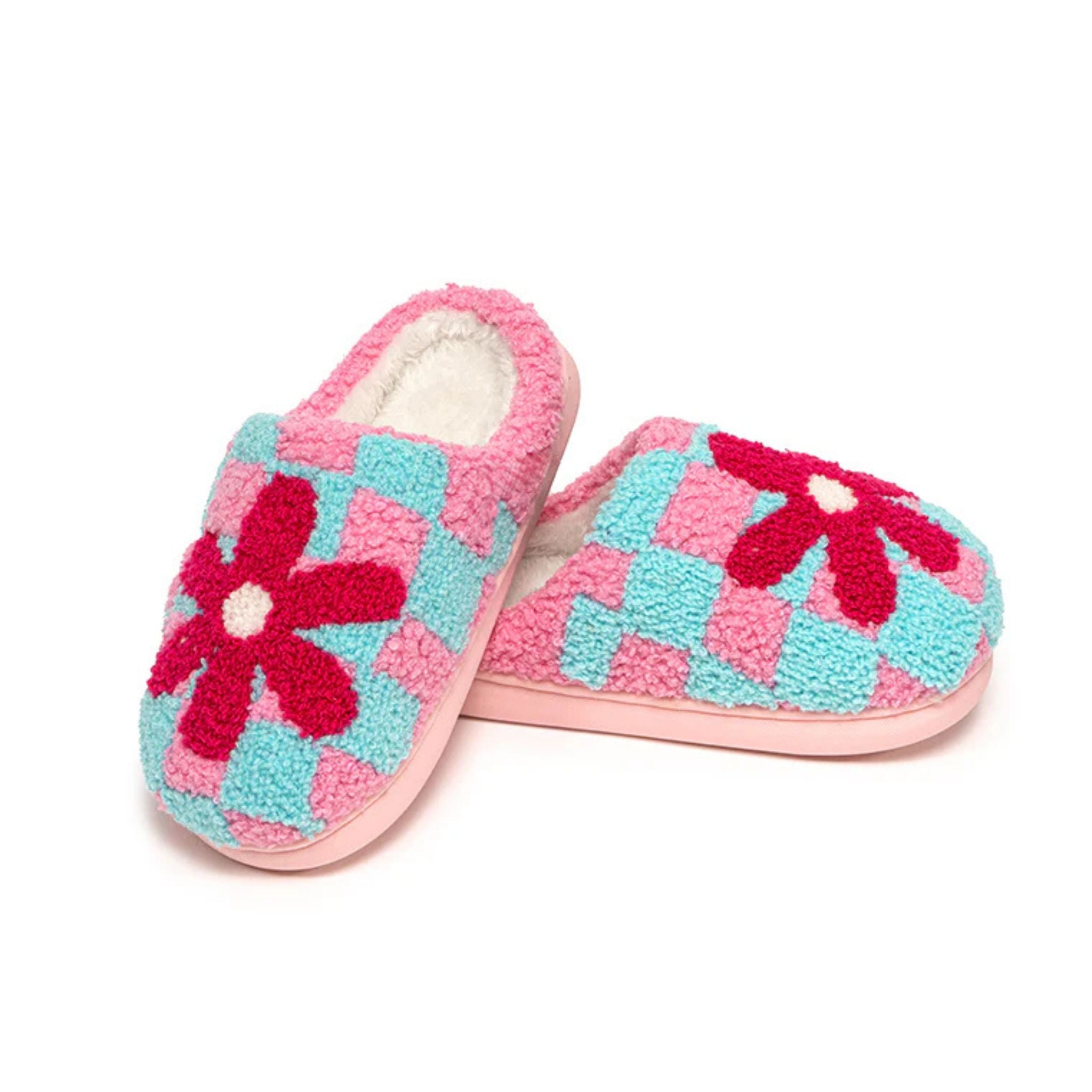 These delightful slippers are a must-have for cozy days at home! Featuring a playful multicolor checker pattern with a bold hot pink flower accent, they're bursting with retro charm. Designed to keep little feet warm and snug, they're ideal for lounging around the house, pajama parties, or just enjoying some downtime. Soft, stylish, and oh-so-comfortable—the perfect companion for any relaxation moment!