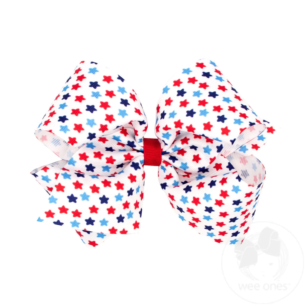 Printed Grosgrain Hair Bow - Patriotic Star
